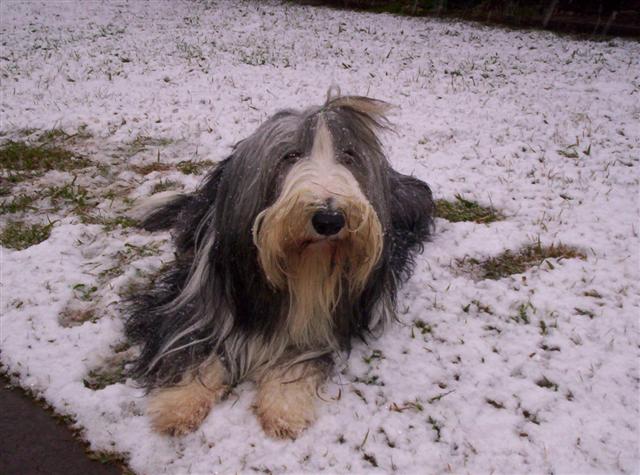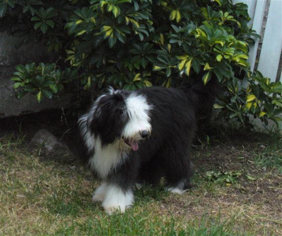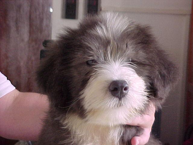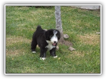 Pipoca es lo que los criadores de bearded llamamos "dark", un perro casi sin marcaciones blancas. Si bien no es tan vistoso como un ejemplar que si las posee, el estandard de la raza es bien claro al respecto y dice "con o sin marcas blancas".
